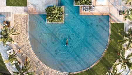 수영장 주변의 야자수를 비롯한