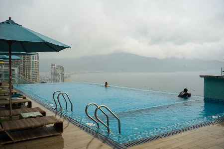 다낭의 신상 호텔인 보코 벨라 호텔. 밤비행기로 도착한 첫날 이곳에 왔는데 비가 와서 수영장은 사진만 담았습니다. 생각보다 강한 빗줄기에 작년 우기시즌의 다낭여행이 기억나 조금 우울해졌네요.