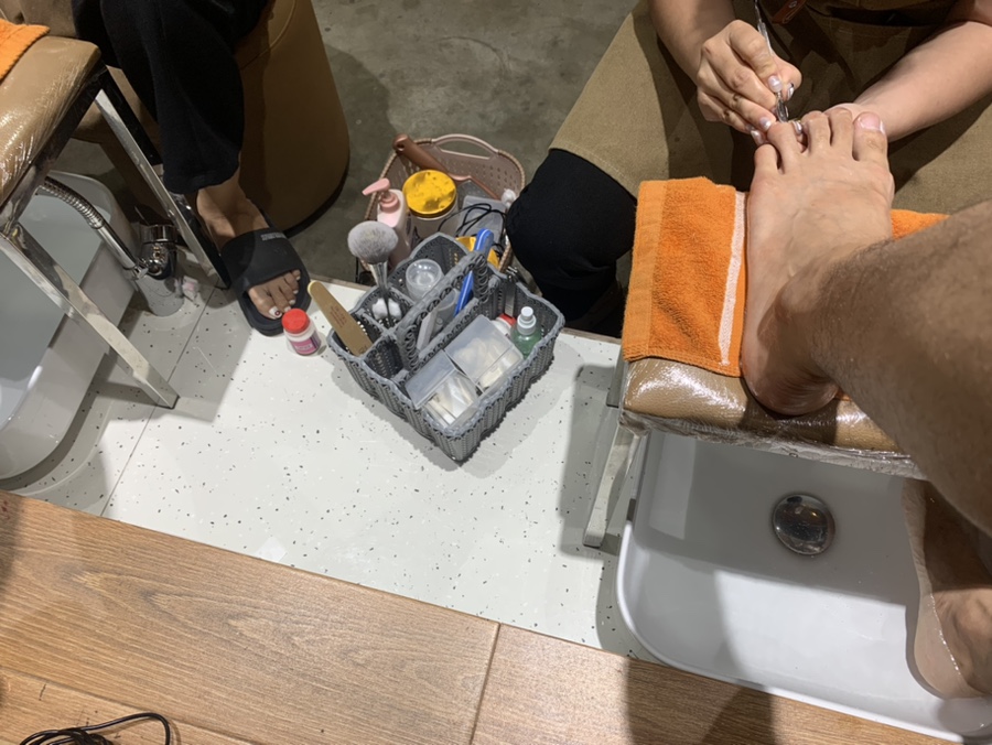 간단한 발톱 정리와 각질제거 후 보습제?를 듬뿍 발라 마사지로 마무리 해주신다. 처음엔 긴장이 되 몸이 경직되 있었는데 직원분들의 숙달된 스킬에 온몸이 풀려버렸다.편안하게 잘 마무리가 된거같다.