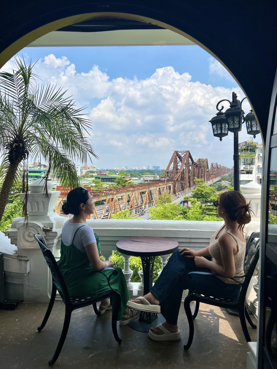 롱비엔 다리가 보이는 카페에요