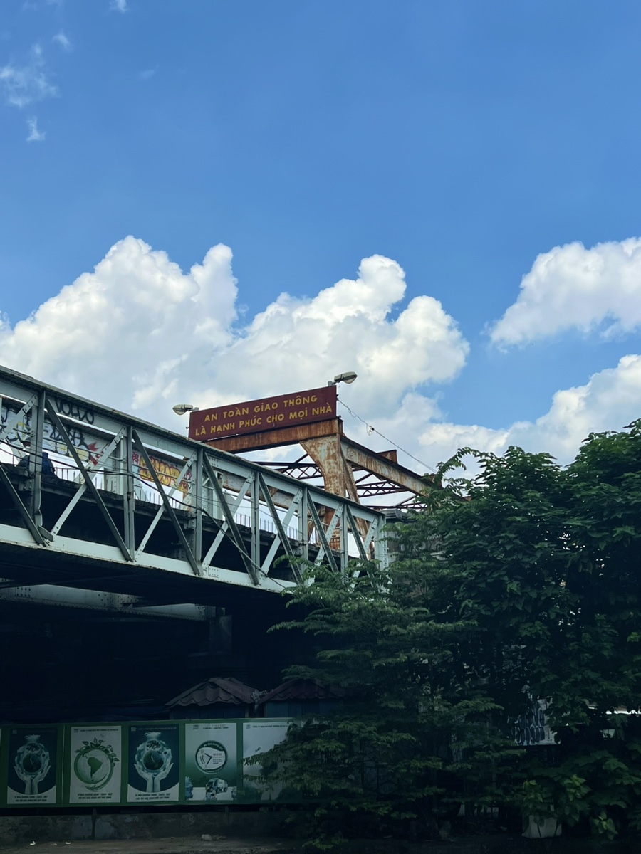 롱비엔 철교+나무들+구름