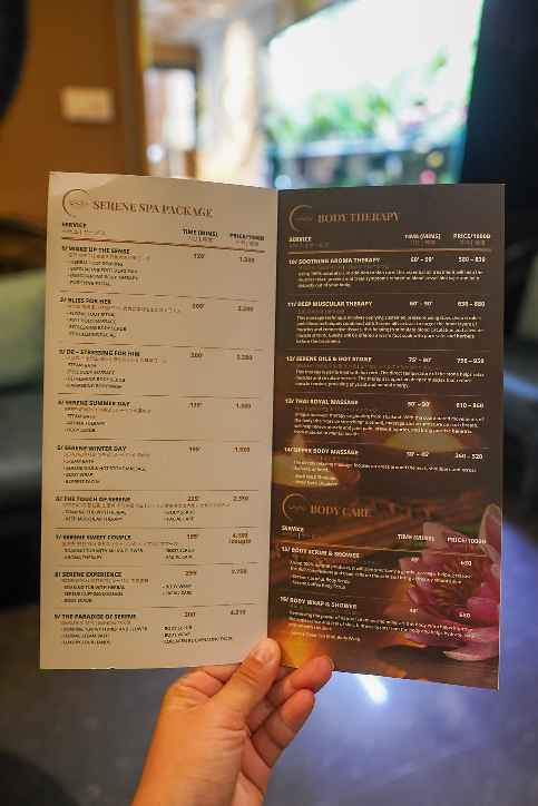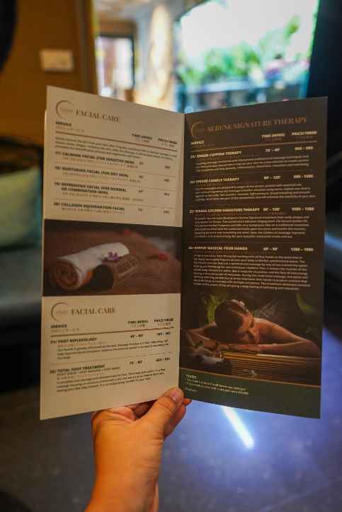 예전 여행에서 예약을 미리 안하고 갔다가, 좋은 곳들은 전부 예약이 꽉찼다고 해서 못가고.. 로컬샵 아무데나 갔다가 대차게 망한 적이;; 있다. 그래서 어차피 1일 1마사지 할거니까, 시간 정해서 미리 예약을 해가는 편. 세레네스파는 위에 보는 것처럼 두가지 종류의 상품이 있는데, 나는 패키지 상품으로 선택했다. 135분짜리 '고요한 여름날' 이라고 되어 있는 상품.