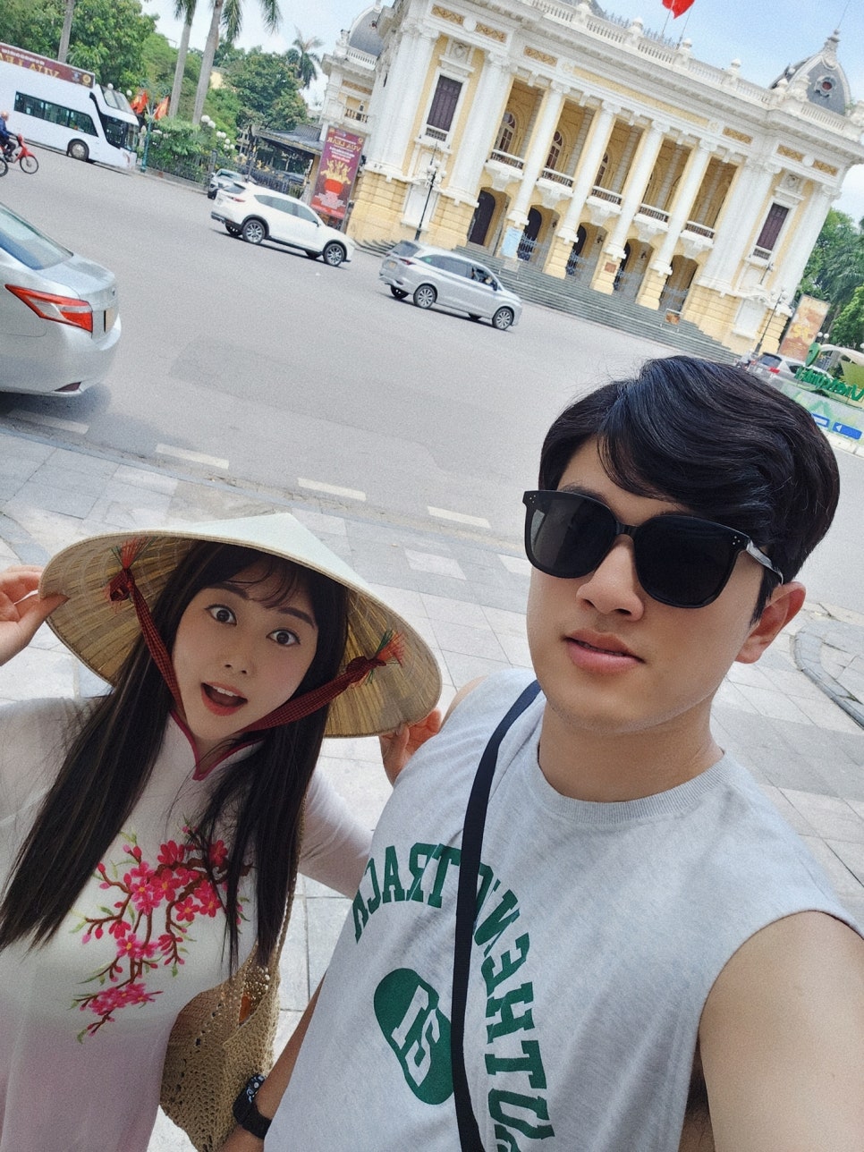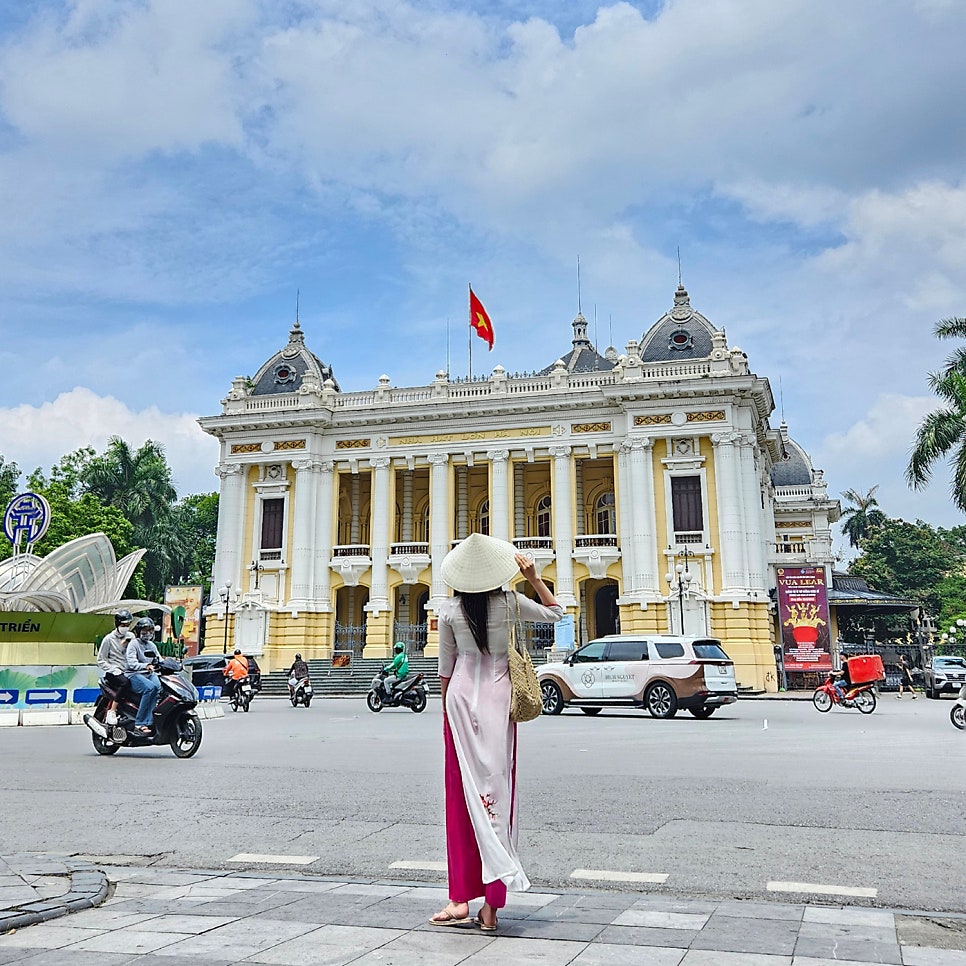 하노이 오페라하우스 앞에서 아오자이 입고 사진찍을려고 하니까