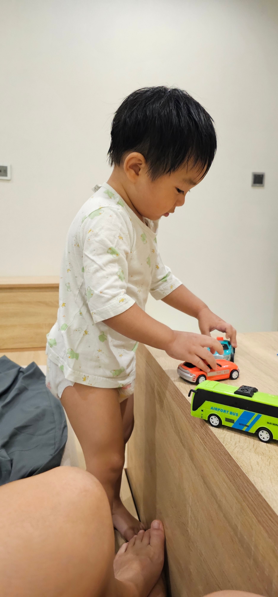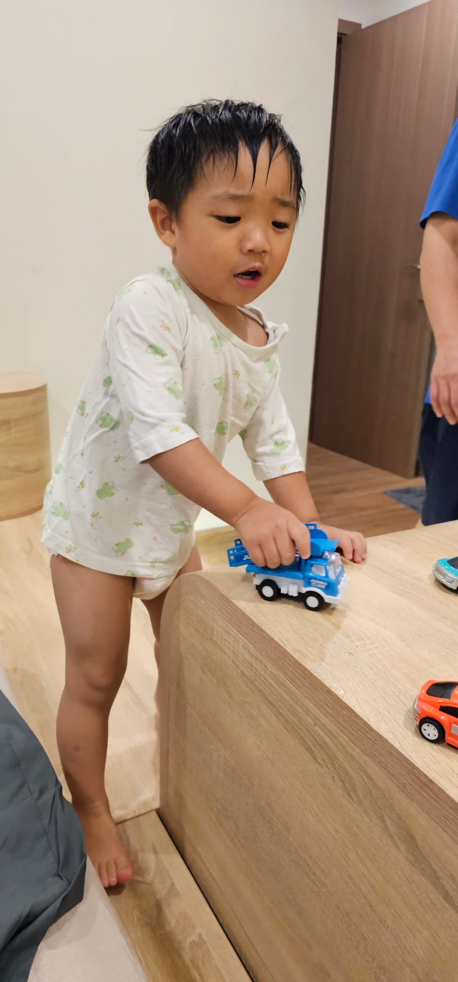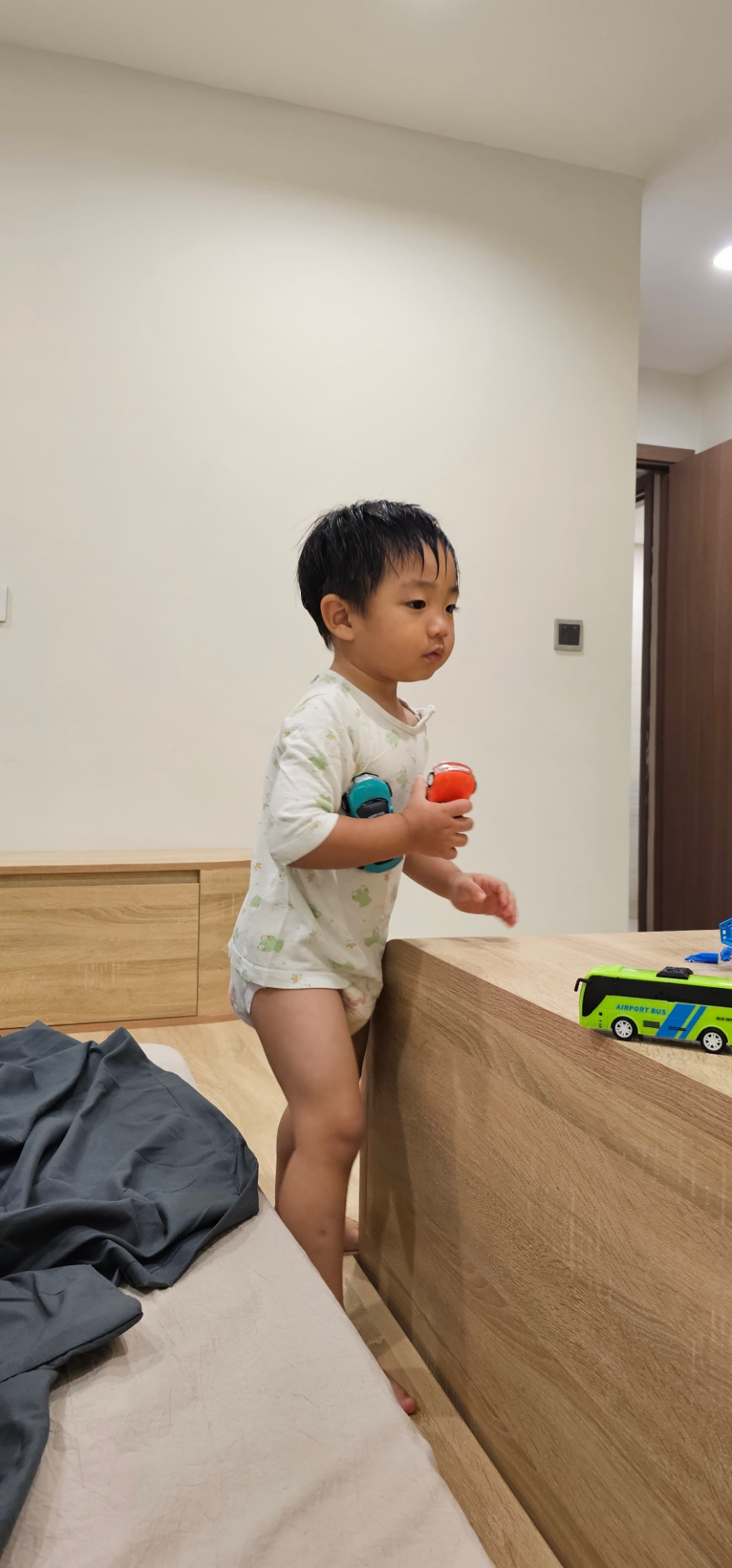 숙소 오자마자 깨버림~~ㅋㅋ 롯데마트에서 저렴하게 구매한 장난감 가지고 놀았다.