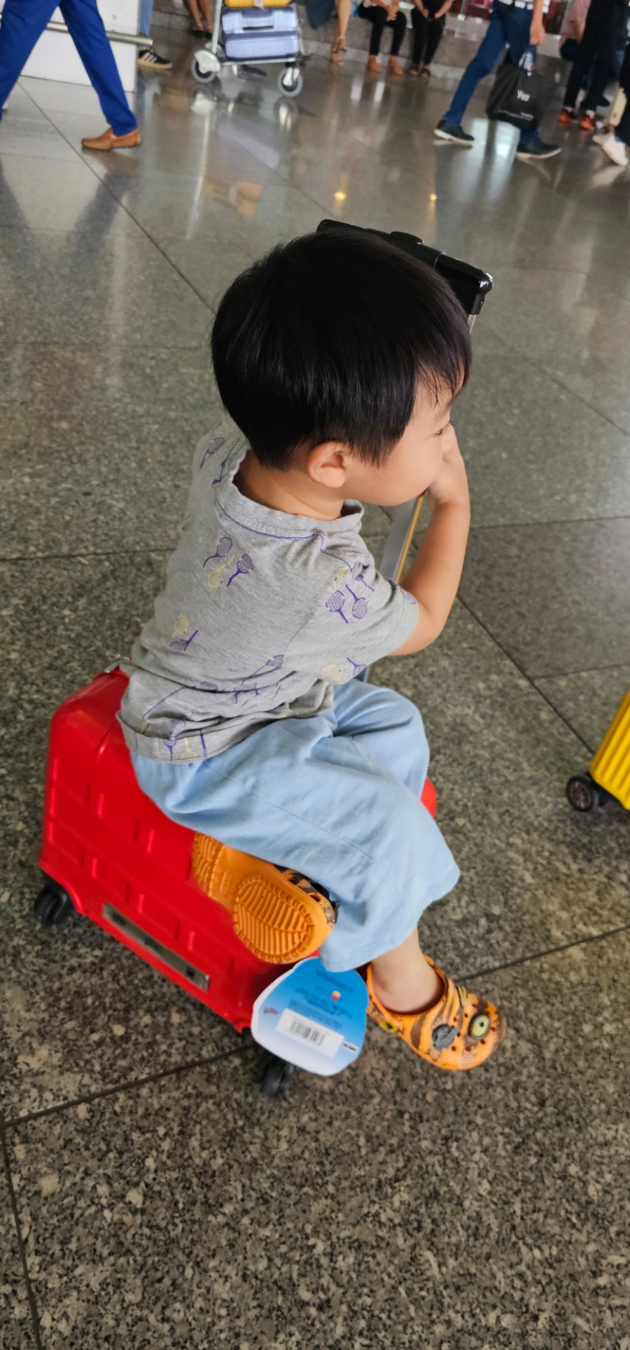 그래도 도착해서는 뛰어다니고 면세점에서 구매한 본인 캐리어 끌고 택시 기다리는 동안 앉아서 잘 있어줬다 ㅎㅎ