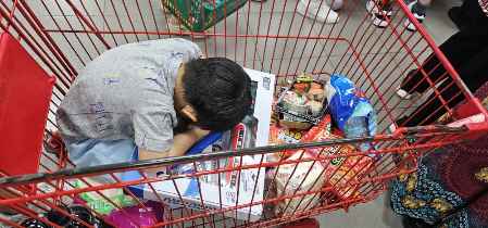 시하는 피곤했는지 카트 안에서 잠들었다...