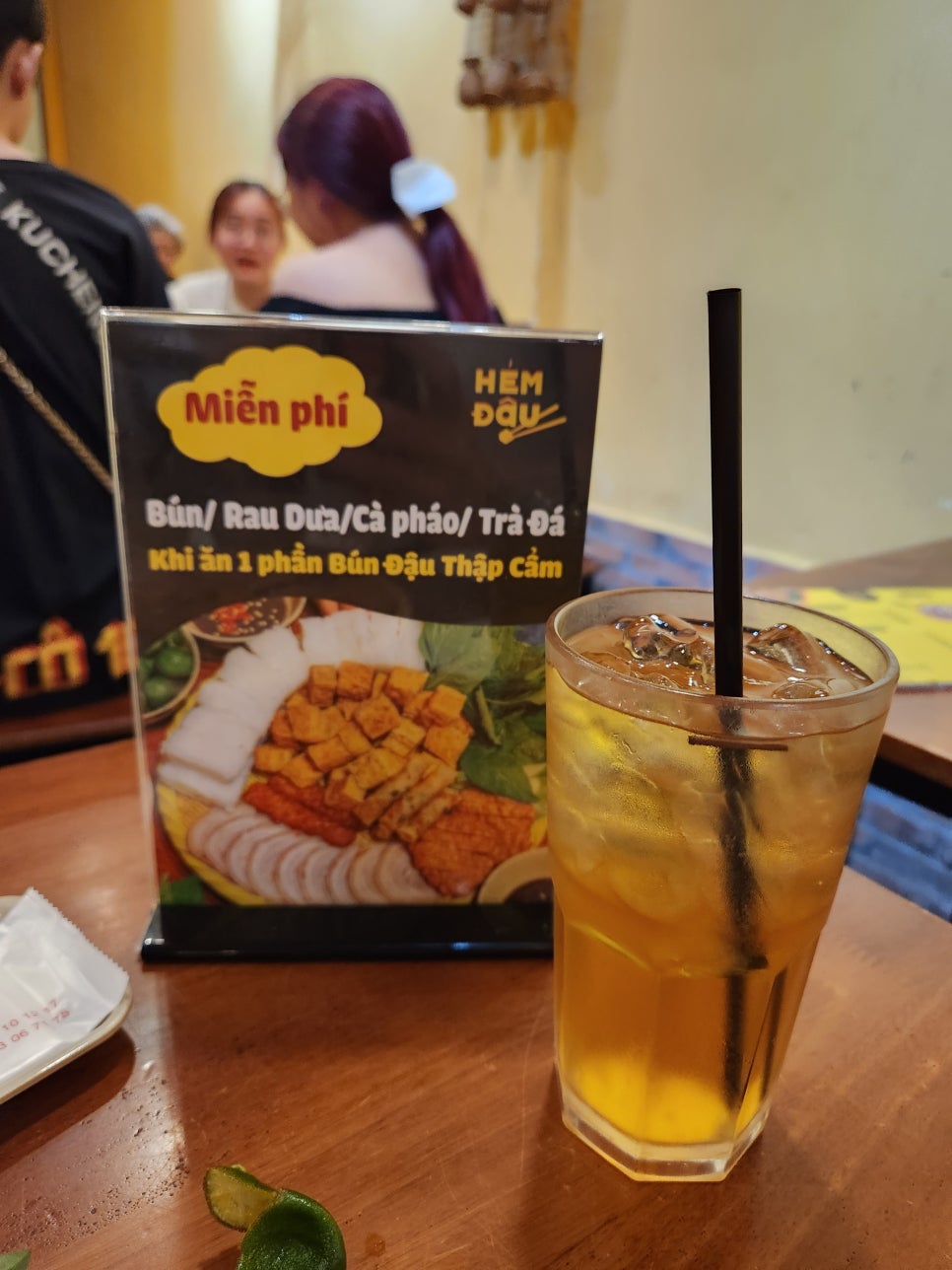 혼밥이라 말동무도 없고 해서 주변을 볼 기회가 많았는데, 옆 테이블을 보니 'Mien phi'라고 적힌 것이 보인다.