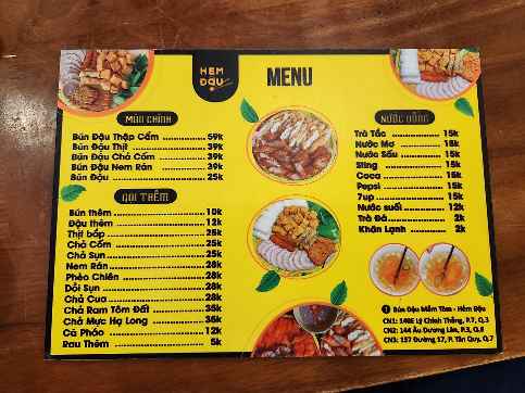 베트남어를 모르긴 하지만, 저것이 '무료'를 뜻하는 단어라는 것은 알고 있었으므로 무엇이 무료일까 짱구를 굴려보니... 분(면), 채소, 차 등이 무료라는 것 같다.