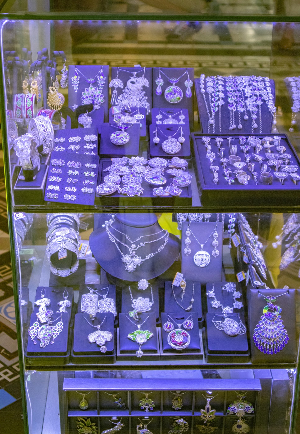 안쪽으로 조금 더 들어가면 노란색 아오자이를 곱게 차려입은 어여쁜 베트남 여인들이 반지, 목걸이, 귀걸이 등 휘황찬란한 귀금속들을 판매하고 있었는데요, 대체로 베트남 전통 문양 형태로 제작되어 기념품 또는 선물 거리로 사 가면 좋을 것 같았어요.