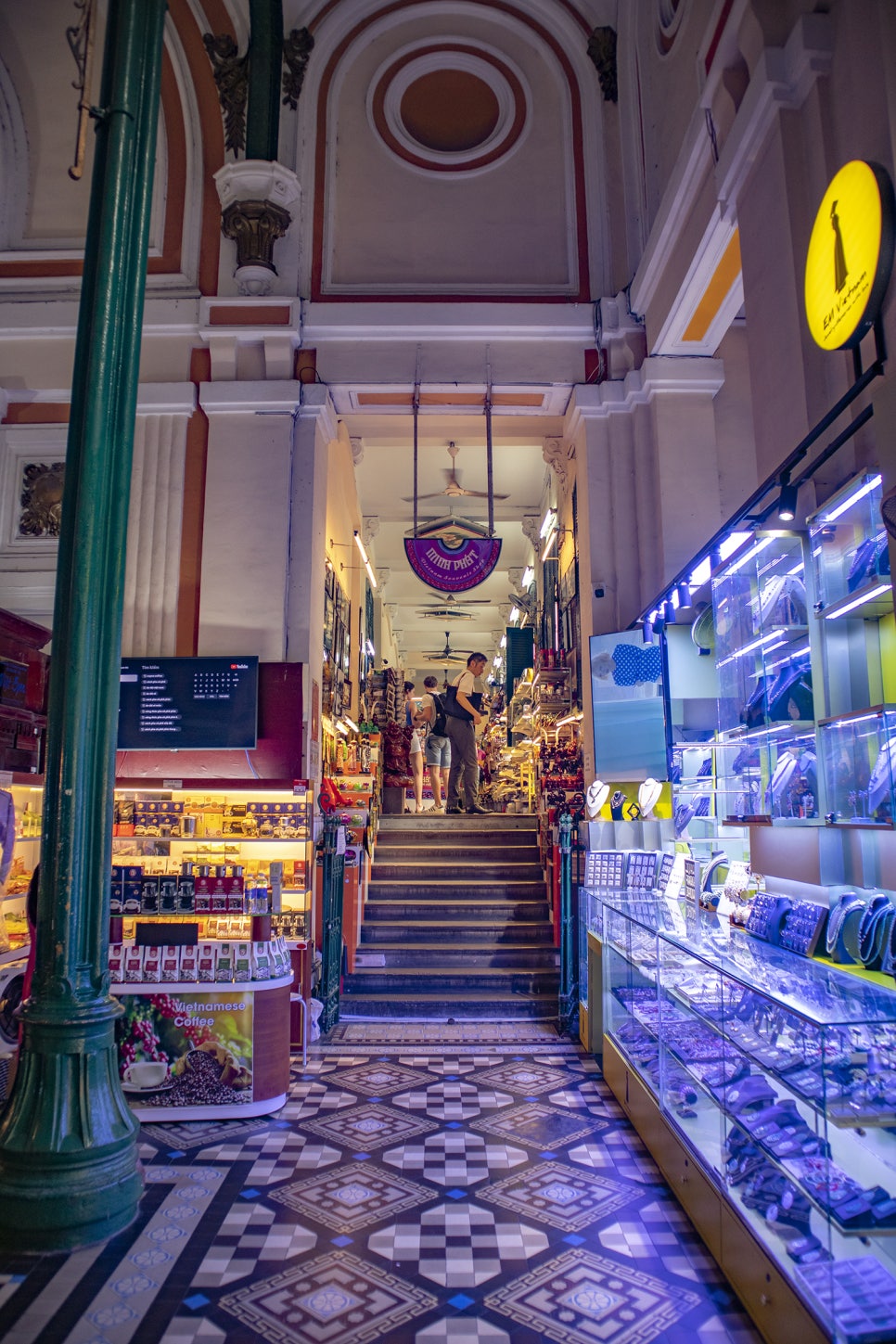 호치민 여행 추천 호치민 중앙우체국에는 카페도 운영되고 있으며 출입문 양옆 통로로 들어가면 또 다른 기념품샵들이 운영되고 있습니다. 호치민에는 길거리에서 소소하게 판매하는 것 외에는 소품샵이 흔하지 않기 때문에 이곳에서 선물 거리들을 쇼핑하면 좋을 것 같습니다.