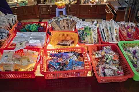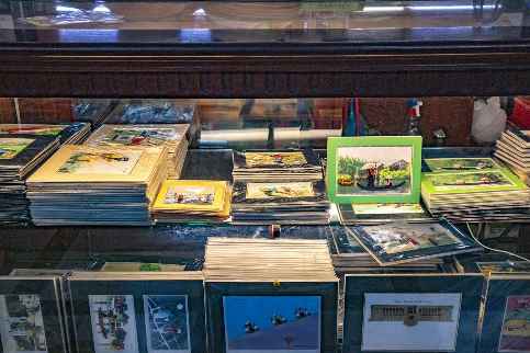 안쪽으로 들어가면 중앙에 동그랗게 차지하고 있는 수납장에 수많은 기념품들이 진열되어 있었는데요, 기념우표와 엽서, 인형, 브로치 등 종류가 상당히 다양했어요. 가격도 비싸지 않은 편이라 소소하게 선물 거리를 사가기 좋을 것 같습니다.