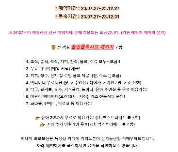 저는 23/12/27까지 베나자 카페에서 진행하는 나트랑 스완도르 올인클루시브를 예약하고 다녀왔어요. 나트랑 호캉스를 고려하고 있다면 아래 링크를 통해 잊지 못할 여행을 계획하시길 바랄게요.