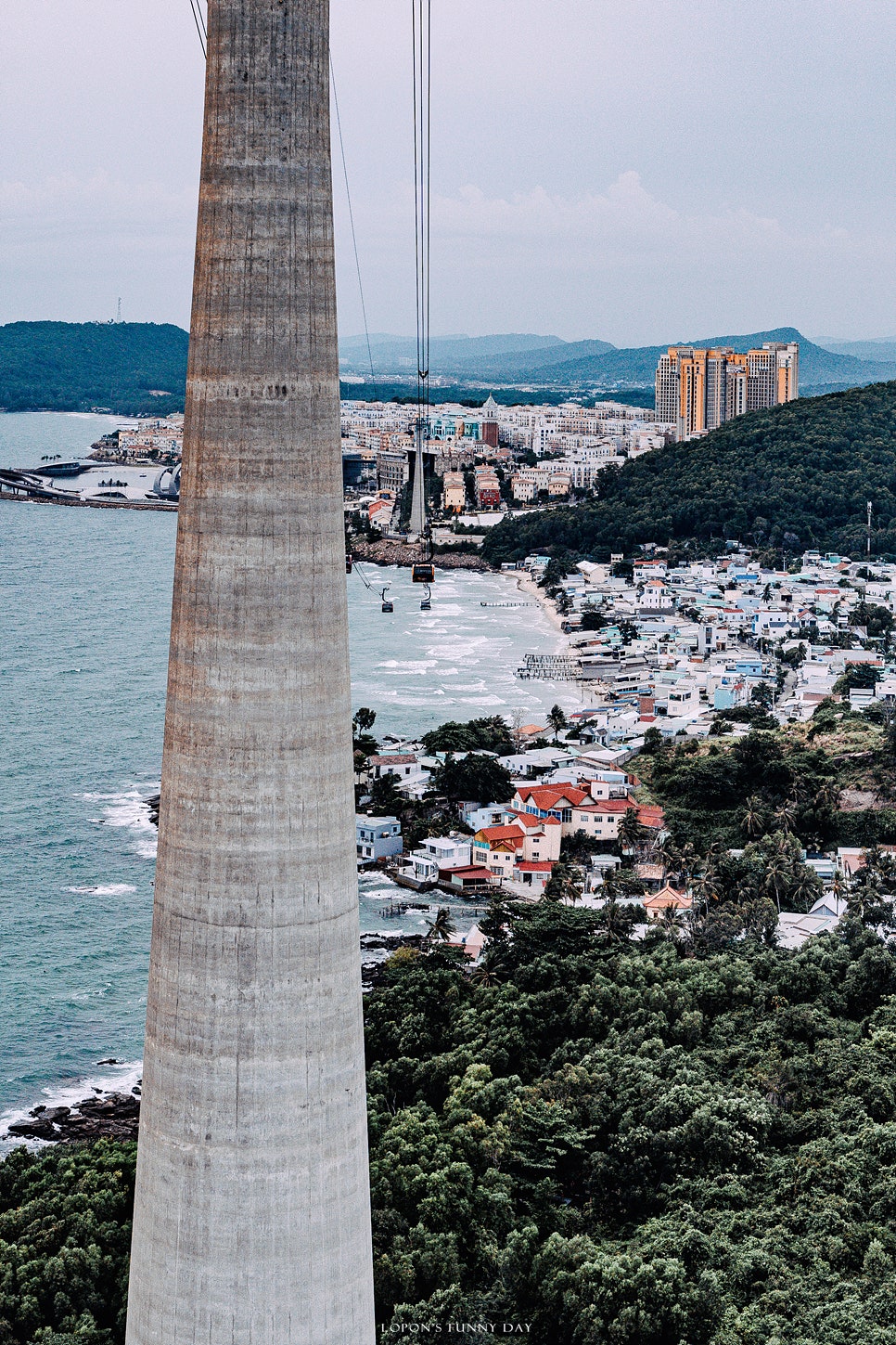 워터파크도 보이고, 뭔가 재미있어 보이는 롤러코스터며 한창 열심히 짓고 있는 혼똔섬 리조트 건물도 보인다. 몇년 뒤에 숙소가 완공되어 섬에 투숙도 가능해진다면 이곳에서 호캉스를 즐기는 것도 참 재미있겠다는 생각이 든다. :)